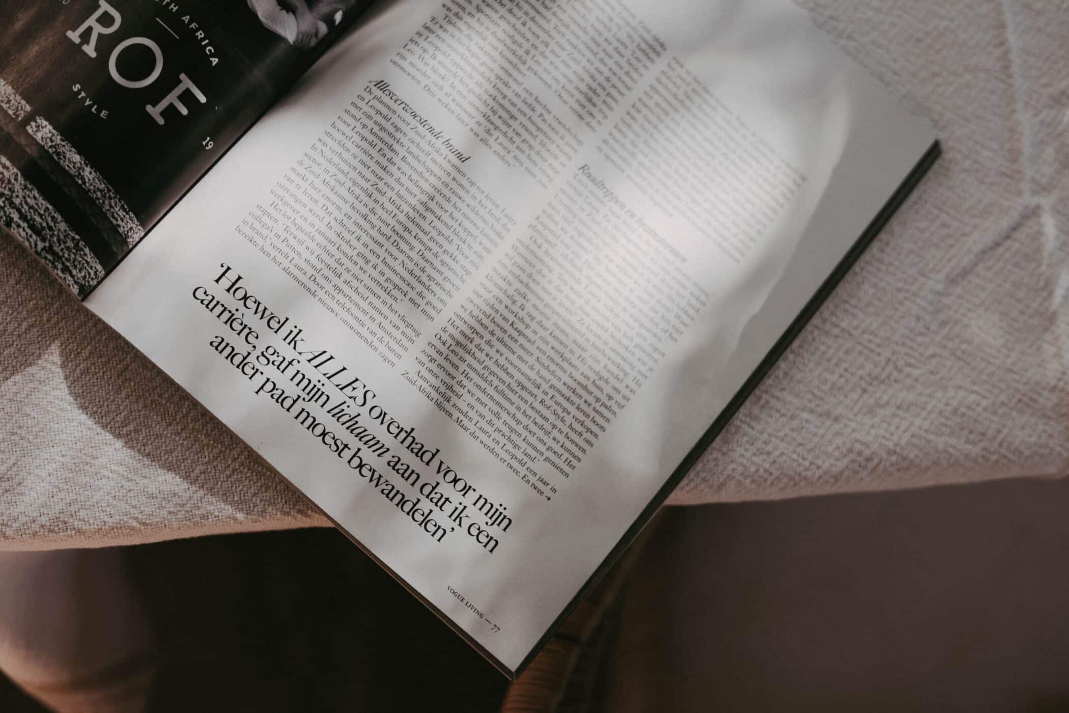 As Vogue put it: “Er zijn maar weinig mensen die hun boeltje durven pakken om in het buitenland een nieuw leven te beginnen. Laura Struik en Leopold van Tuyll van Serooskerken waagden de sprong. Ze deden een ik-vertrekje en verruilden hun Amsterdamse appartement voor een roze villa in het Zuid-Afrikaanse dorp Riebeek.”
