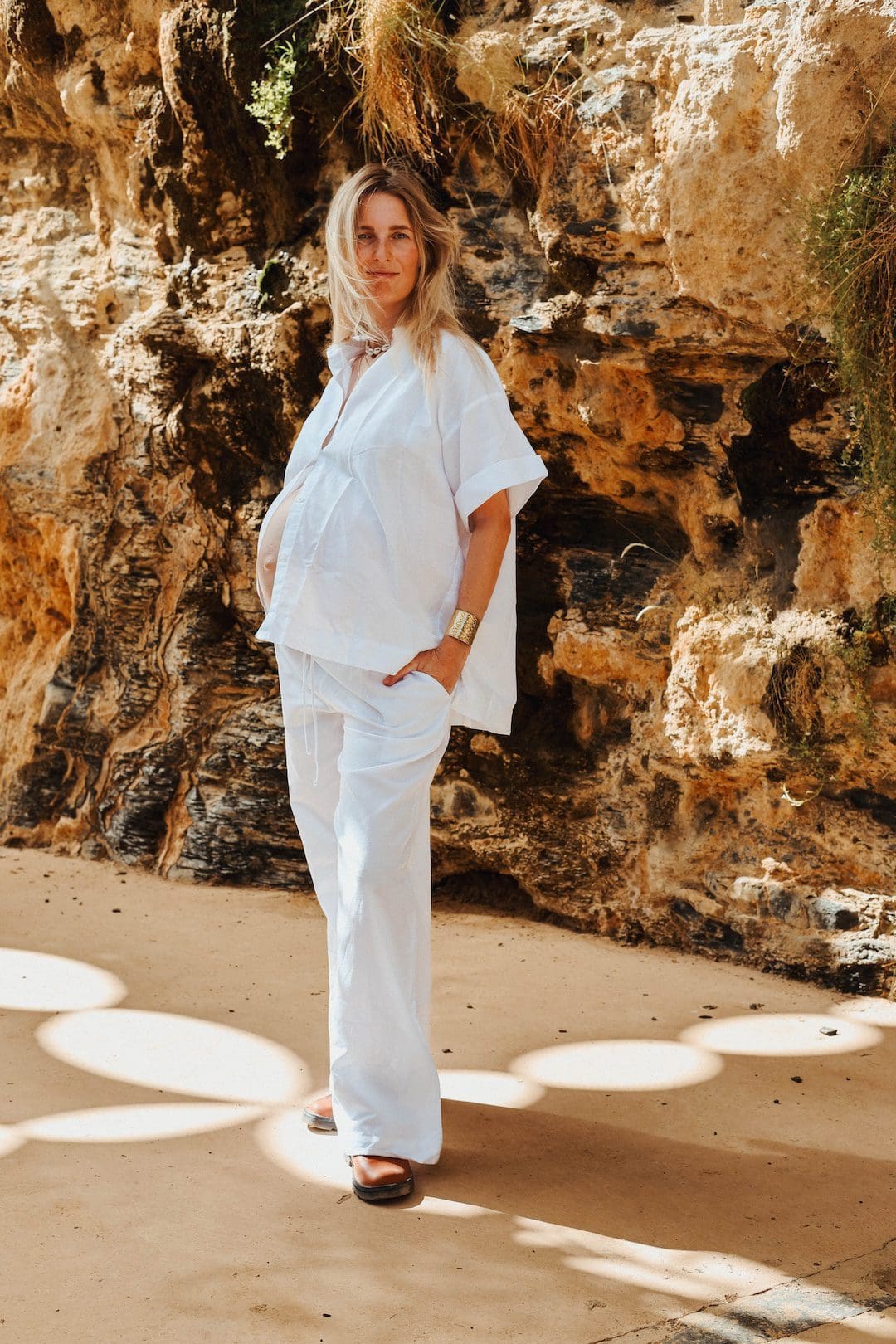 In the heart of the Tankwa Karoo, at the Place of Dreams (POD), I wore my favourite look (especially during pregnancy): flowy white pieces by local designers like Swing, HempLove, Satsuma and Insync Intimates. Light and effortless, perfect for wandering through the desert and feeling the sun on my skin.