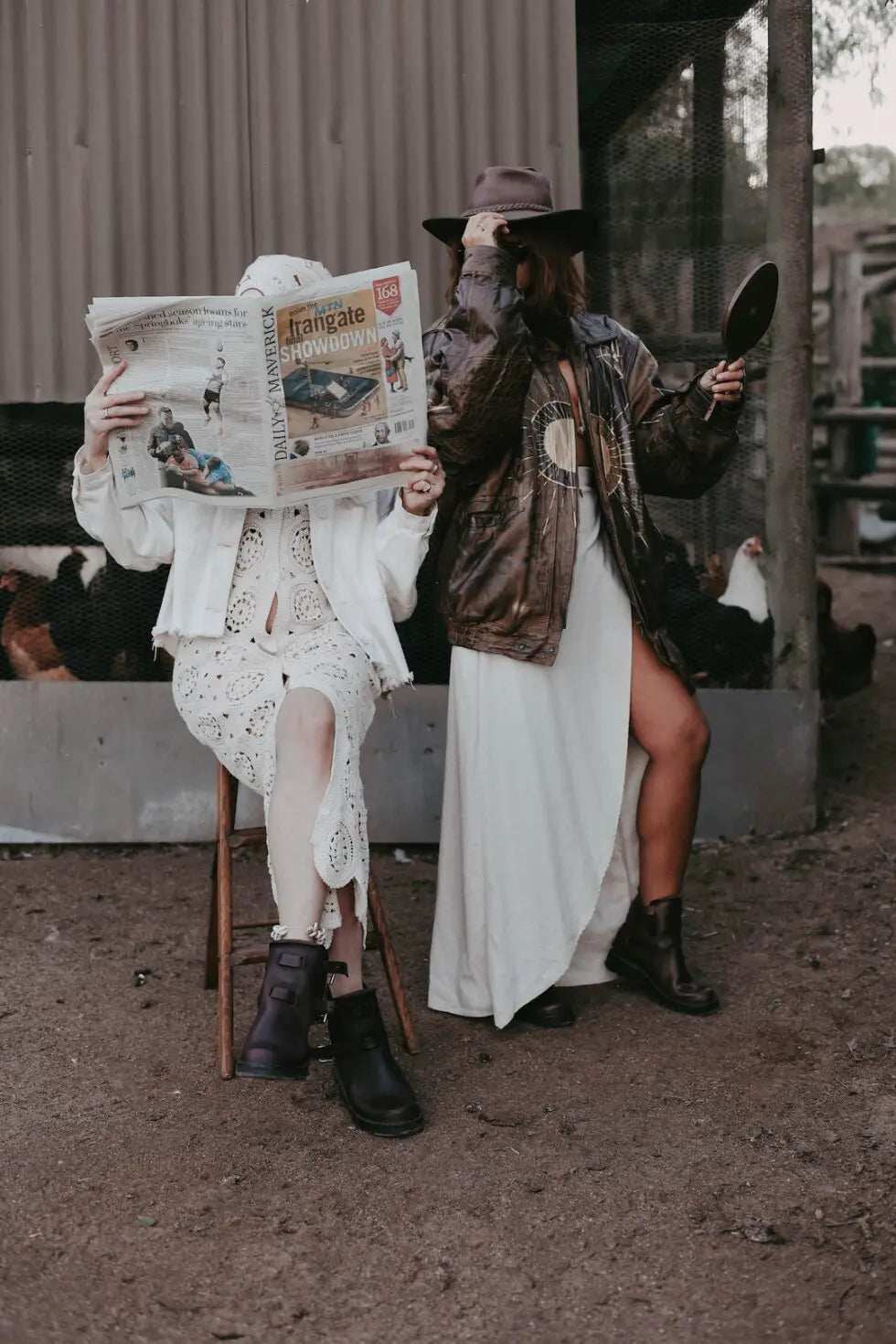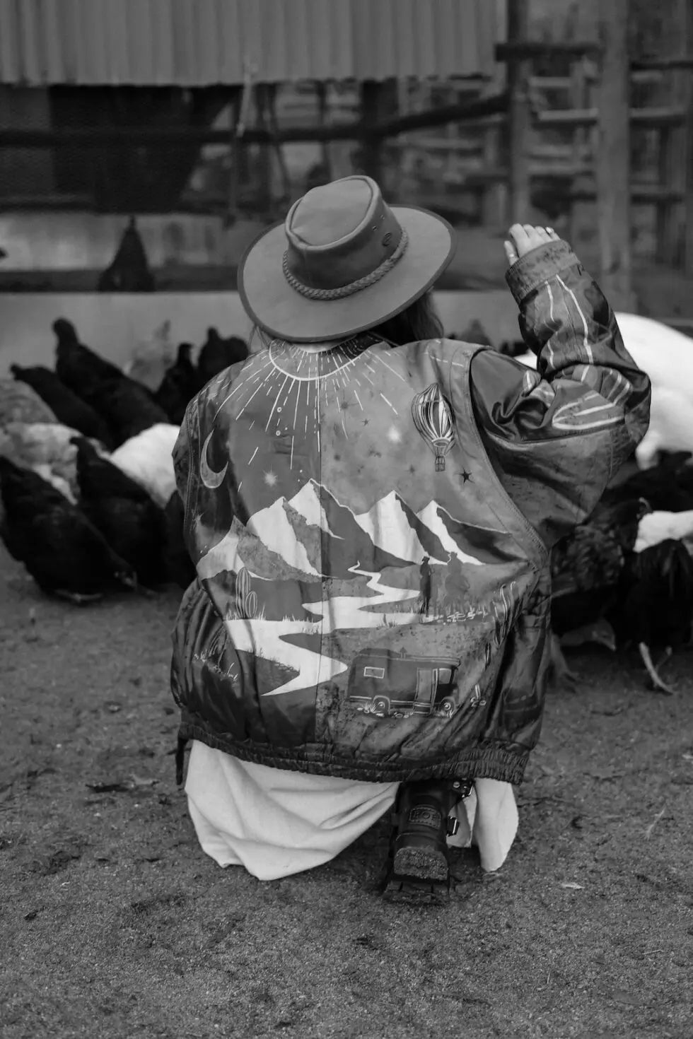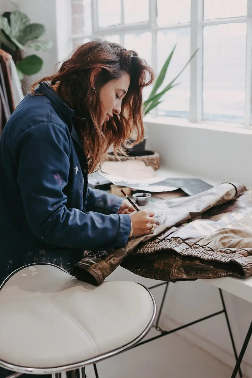 Die Zusammenarbeit mit Mad Zoggs Skins erstreckte sich über Monate und umfasste Reels, Fotos, Skizzen und kleine Einblicke hinter die Kulissen. Hühner liefen durchs Bild, während wir versuchten, das Set zu stylen. Esel und Ponys schnüffelten herum, während wir filmten. Lange Nachmittage verbrachten wir damit, Caelyn beim Auftragen von Farbe auf Leder zuzusehen.