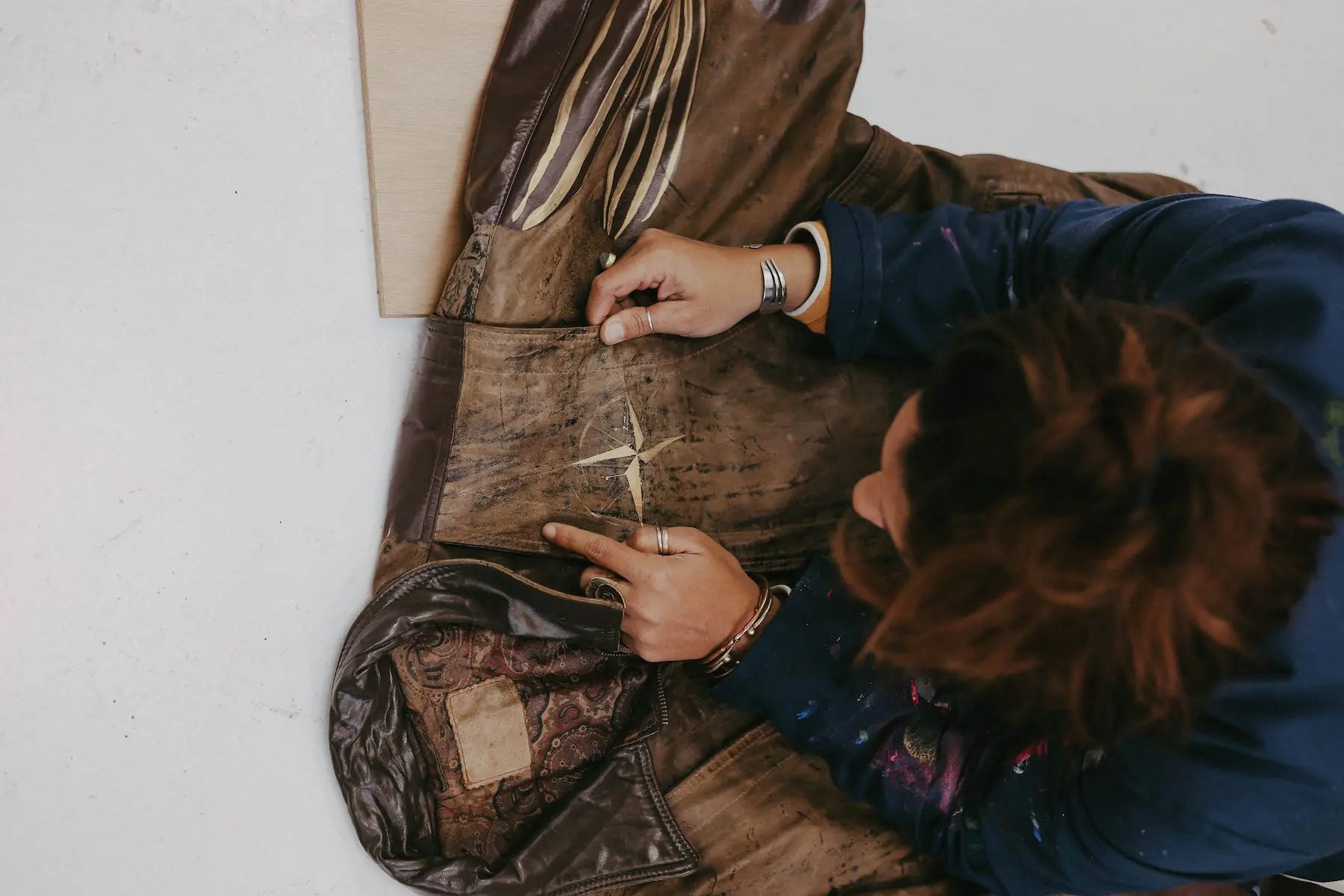Manche Projekte fügen sich auf ganz natürliche Weise zusammen, als wären die einzelnen Teile schon immer da gewesen und hätten nur darauf gewartet, verbunden zu werden. Die Begegnung mit Caelyn war so ein Moment. Ihre Art, mit Leder umzugehen, hat uns sofort fasziniert. Aus alten, Secondhand-Jacken macht Caelyn etwas ganz Neues. Jede Jacke bleibt Leder mit einer Geschichte, aber durch ihre Hand werden ihr unzählige Geschichten hinzugefügt. Wir wussten sofort, dass das perfekt zu ROF-Style passt. Auch unsere Stiefel erzählen Geschichten und Abenteuer, geprägt von den Wegen, die wir gegangen sind.