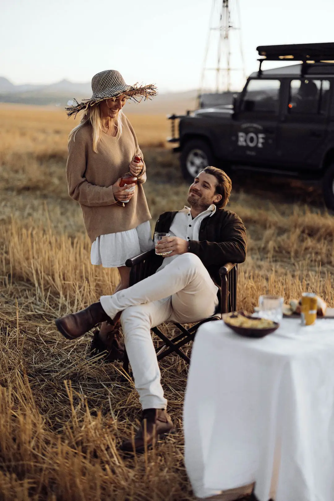 Magda and Marcel wanted to do something adventurous, something that resonated with who we are. So, we packed up our Land Rover, brought our dog Roffie along, and set off into the middle of nowhere. There’s something about the open landscapes of South Africa, the endless fields, the quiet beauty, that always calls to us. This time, it felt even more significant because I was pregnant with our firstborn, Stella.